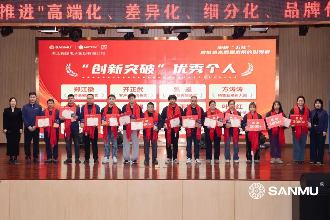 过去的一年,是铭振在“五化”道路上笃定前行的关键之年。大会颁发了2025年度优秀个人及团队奖项。他们中,有以技术创新推动产品“高端化”跃升的研发尖兵;有在细分市场撕开突破口的营销先锋;也有以极致服务践行“服务化”承诺的一线班组。